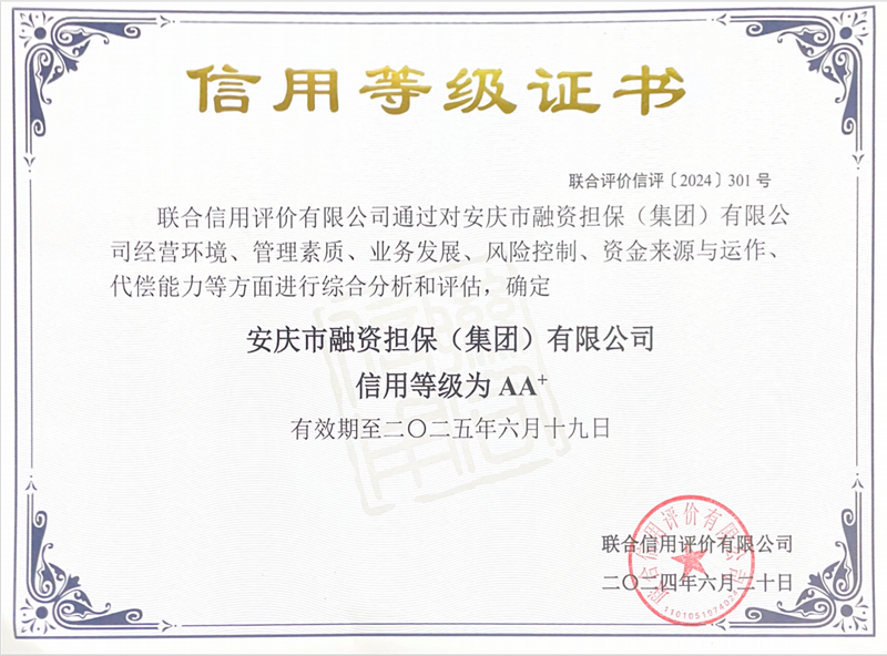 近日,在省擔(dān)保協(xié)會組織的全省融資擔(dān)保機(jī)構(gòu)信用評級中,經(jīng)聯(lián)合信用評價有限公司評定,市擔(dān)保公司連續(xù)兩年獲得“AA+”信用評級,在省內(nèi)147家融資擔(dān)保機(jī)構(gòu)中位居第一梯隊(duì),充分反映了權(quán)威評估機(jī)構(gòu)對公司綜合實(shí)力、資產(chǎn)質(zhì)量、戰(zhàn)略規(guī)劃和發(fā)展前景的高度認(rèn)可。