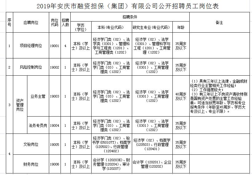 附件:《2019年安慶市融資擔(dān)保(集團(tuán))有限公司公開(kāi)招聘員工崗位表》